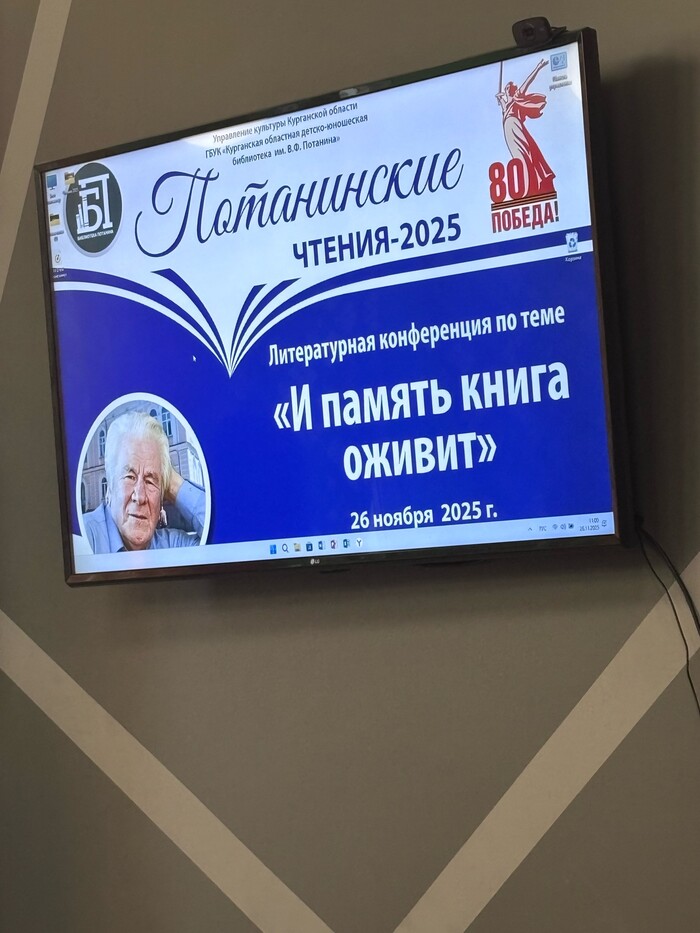 Студентка 160 группы Курганского техникума сервиса и технологий Елизавета Александрова приняла участие в конференция «Потанинские чтения-2025» по теме «И память книга оживит». Мероприятие прошло в областной детско-юношеской библиотеке им. В.Ф. Потанина для студентов и преподавателей со всего региона и было посвящено Году 80-летия Победы в Великой Отечественной войне и Году защитника Отечества.