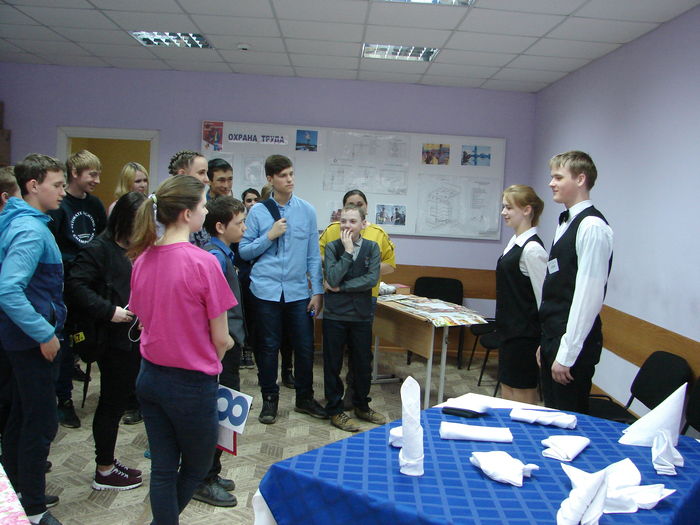 Далее школьникам было предложено пройти профориентационный квест, в ходе которого ребята смогли познакомиться с профессиями: «Мастер производства молочной продукции», «Пекарь», «Повар, кондитер», «Оператор процессов колбасного производства», «Оператор швейного оборудования», «Официант, бармен», «Продавец, контролёр-кассир», «Парикмахер» и «Слесарь по эксплуатации и ремонту газового оборудования».
